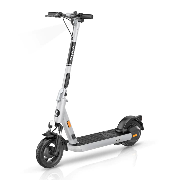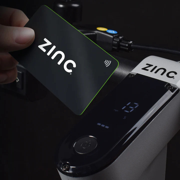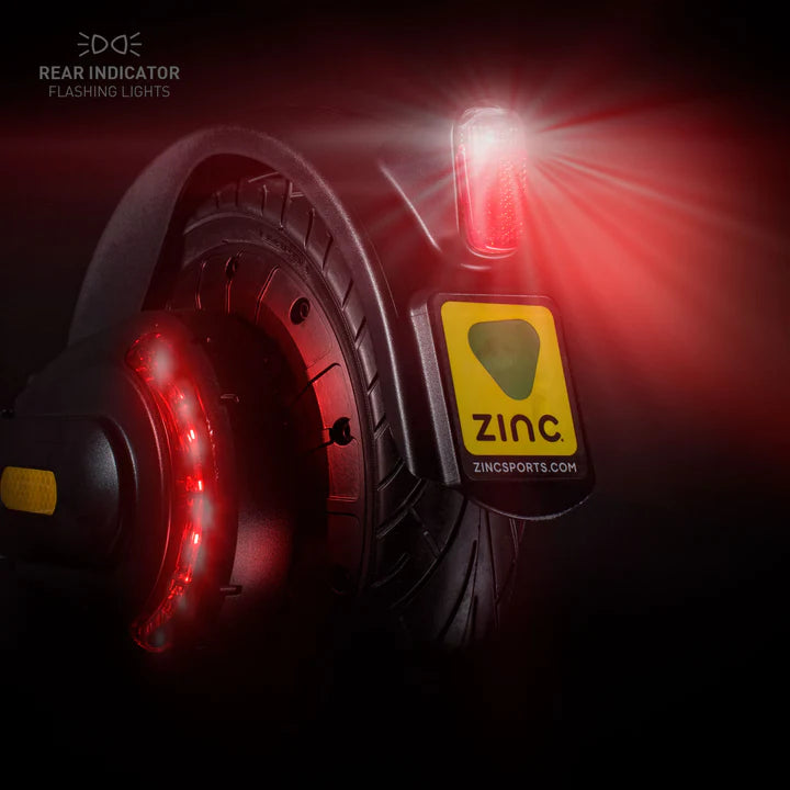 The Zinc Folding Electric Velocity+ Scooter is an absolute must have for you. To start your journey, simply kick off and go! With a fully charged battery in just 6 hours the Velocity+ offers an impressive max distance of up to 31 miles, meaning that you will be ready to go and scooting in no time. Perfect for your journeys, the Velocity+ is equipped with an easy-to-use thumb throttle with three different speed modes – Eco, Drive and Sport - of 5mph, 9.3mph and 15.5mph. Feel the wind, speeding along with a 500w motor and an impressive torque of 28.75 N.m for those quick accelerations. Your safety is important to us here at Zinc, that’s why the Velocity+ comes with two easy-to-use front and rear handlebar brakes (like a bike!) to bring you safely to a stop. The Velocity+ also comes with powerful front and rear LED lights, a front white reflector, two side reflectors and a rear red reflector to keep you visible and to allow you to view your surroundings clearly when it gets dark. For your added comfort, the Velocity+ comes with front dual arm suspension and 10-inch rear solid & front air blown tyres so that your journeys are smooth and bump free. The Velocity+ also comes with a stylish, versatile, zinc styled, rubber deck to give you extra comfort and grip whilst you are riding. The Scooter also comes equipped with front and rear mudguards to keep your rides clean. Equipped with high quality rubber handlebar grips, your rides will always be comfortable. For your ease and added security, the Velocity+ also comes with a safety lock built into the stem to physically lock your scooter, a NFC card unlocking and locking feature, so that you know your scooter is always safe and sound. For your ease, you get two cards, a smaller one for your key chain and a larger one for your wallet! The Velocity+ also comes equipped with built in turning signals for extra safety and convenience. The Scooter also comes with rear E-ABS, so that your rear wheel does not lock up for effective and safe braking! You can easily stay in touch with your journey statistics using the built in LED screen. Easily track you speed, speed mode, light symbols and battery level at just a quick glance. The Velocity+ also comes with an accompanying app for your ease. Designed and engineered in Britain. Zinc, the way forward.